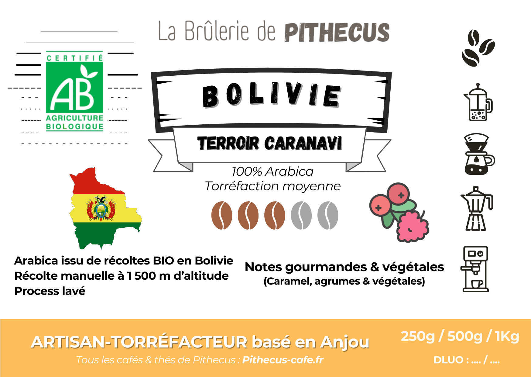 Arabica de Bolivie issu de la région Caranavi récolté durant la période de mai à septembre 2025